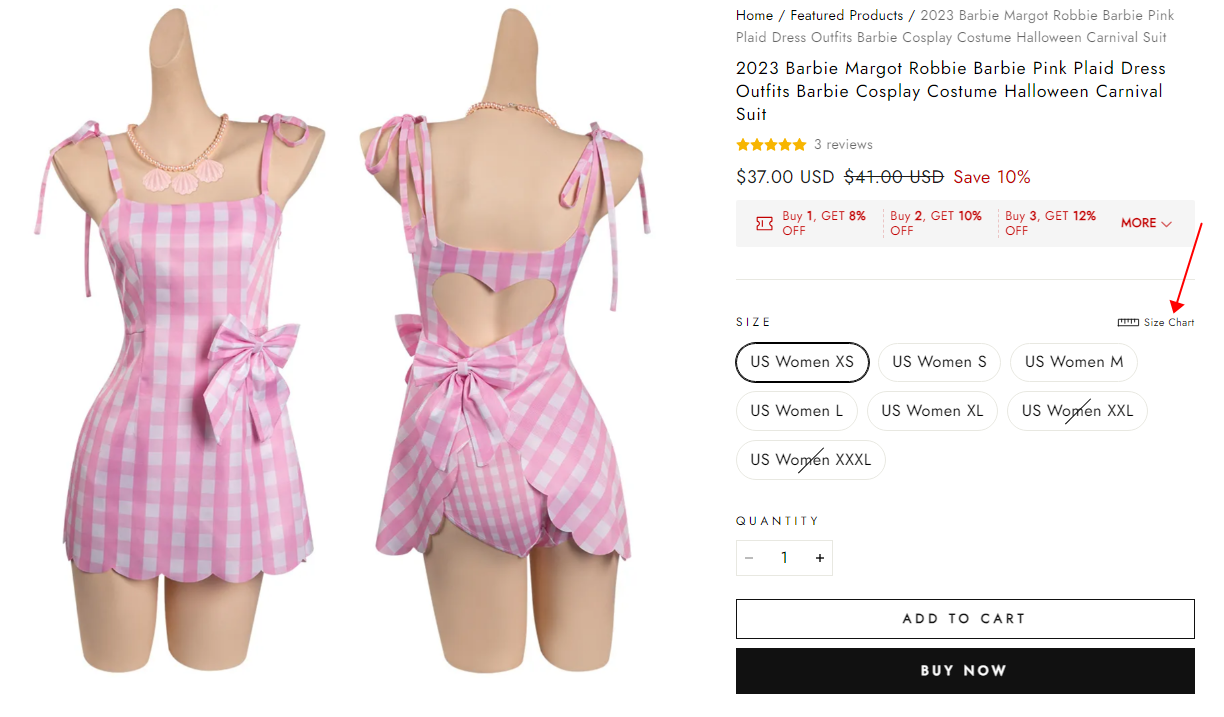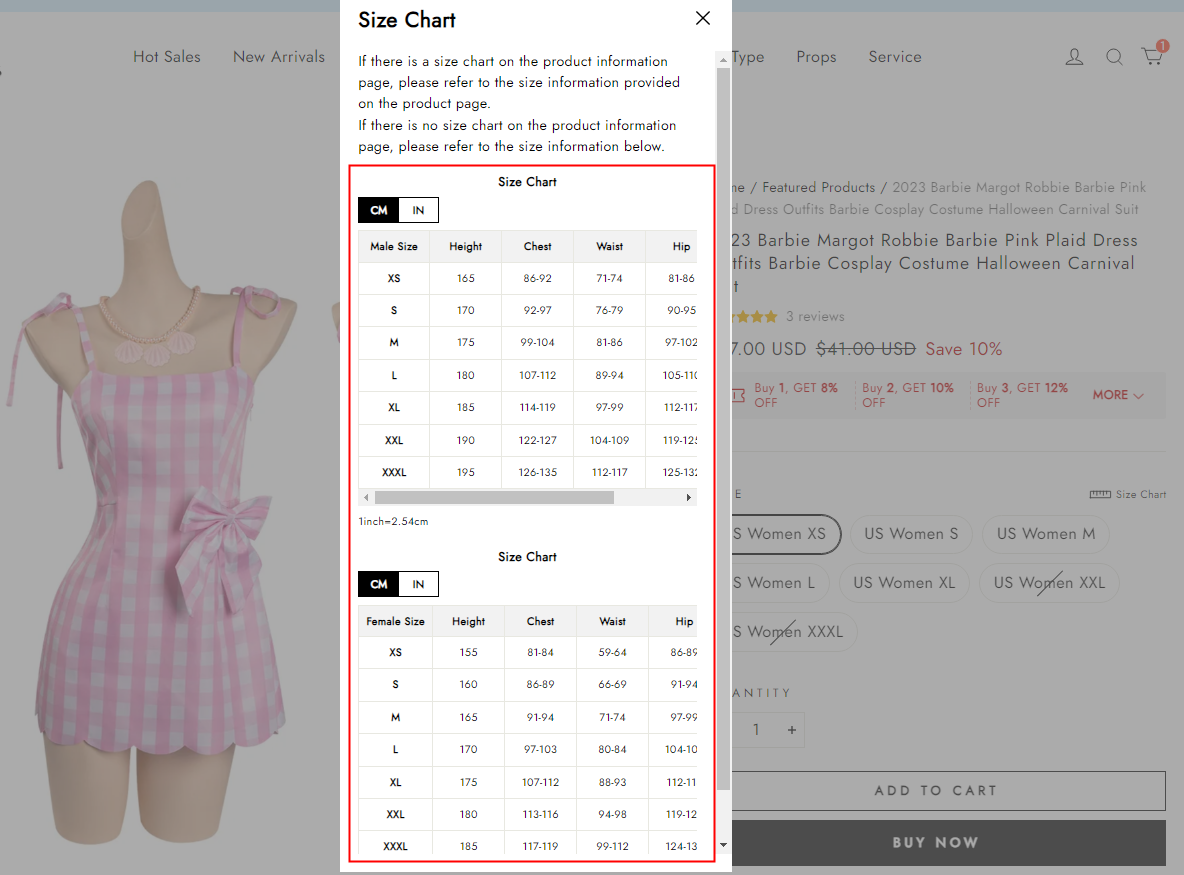 2. If there is no size chart on the product page, please click the "Size Chart" button.